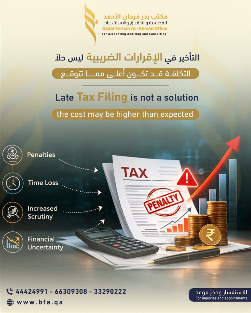 نُوفّر الدعم الكامل في الامتثال الضريبي، من التسجيل إلى إعداد الإقرارات والتمثيل أمام الهيئة العامة للضرائب كممثل معتمد للمكلفين، مع ضمان الدقة والالتزام بالمواعيد.